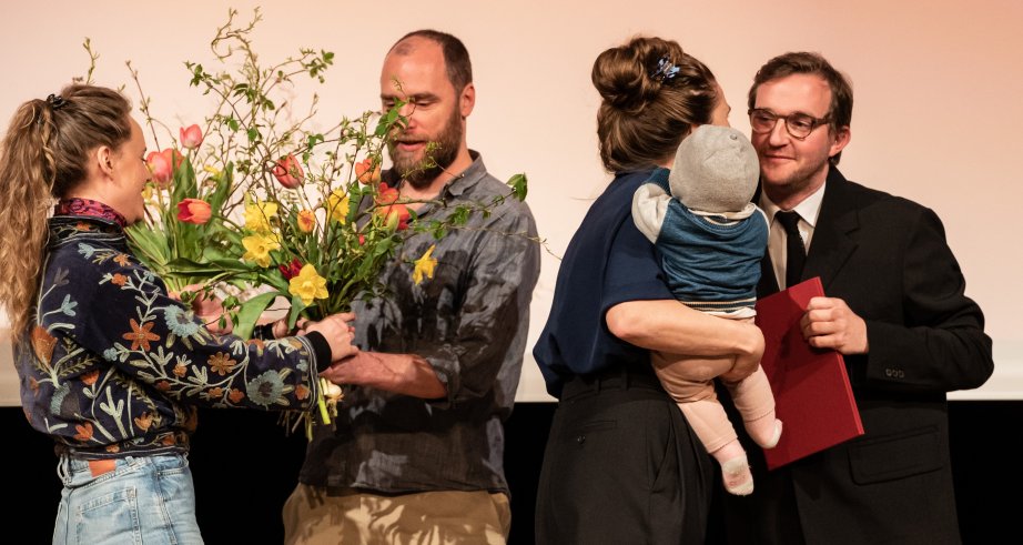 Peter Schernhuber, der Leiter der Filmabteilung des Bundesministerium für Wohnen, Kunst, Kultur, Medien und Sport überreichte den Gewinner*innen die Auszeichnungen.